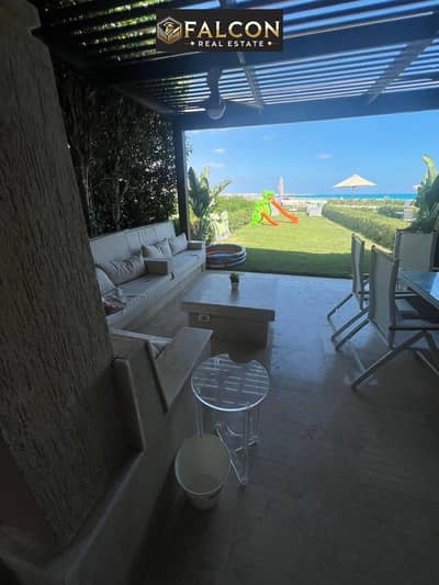 Lowest down payment + longest payment period. Chalet with a full sea view and complete service (air conditioning + kitchen) in Telal Sokhna.