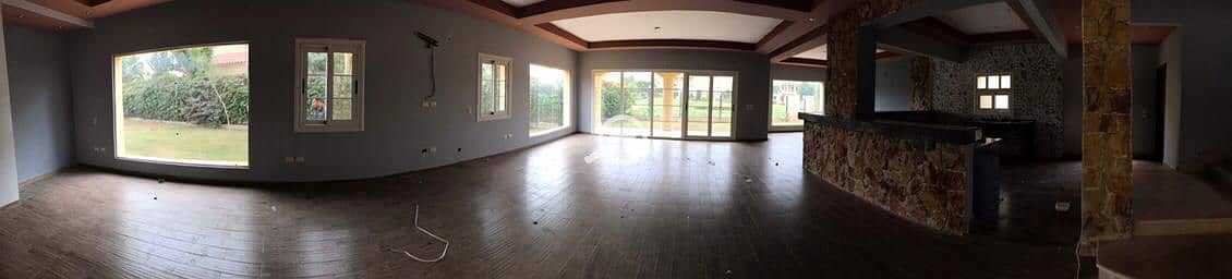 Ground floor: Contains an open kitchen leading to the reception with a service door to the garden and garage, a maid's room, a bathroom, and a laundry room. The reception is divided into three dining areas and two sitting rooms overlooking the garden. First floor: A master bedroom with an en-suite bathroom and two additional bedrooms with a bathroom between them, a private reception area, and a terrace overlooking the garden and a service area (coffee and breakfast). The external roof has a service room overlooking a very open view of the plantations and internal gardens in the city.