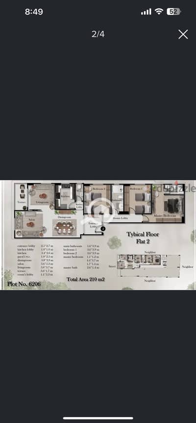 Apartment for sale 210 meters in Mokattam, Al-Quds Street, a very wide and upscale area, in the Iskoda area, Al-Qusoor neighborhood, in one of the finest neighborhoods of Mokattam. 3 bedrooms, 3 bathrooms, and a reception area with 3 sections at a price of 23,000 EGP per meter.