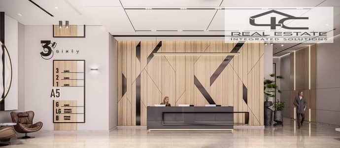 Office for sale with down payment and installments prime location ready in 3 months with view of plaza and Bin Zayed Axis in Three Sixty LMD Fifth Settlement New Cairo