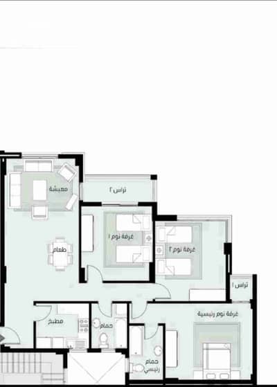 *Interior Division*: 3 Bedrooms Including Master Room + 2 Bathrooms + Reception + Kitchen + 2 Terraces