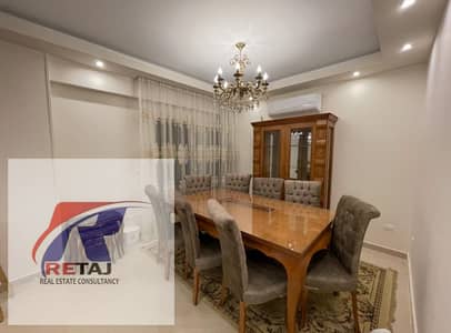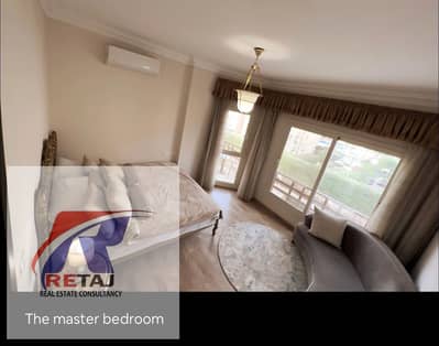 Unit Features: 172 sq m Extra Super Lux Apartment, 3 Bedrooms, Furnished, Air Conditioned, Akoya Compound, Pool, Gardens, Mall, Security, Garage, Wi-Fi, Shower, Maid's Room - 172 sq m fully air-conditioned apartment Super deluxe finishing, fully furnished, 3 bedrooms + 3 bathrooms + maid's room + American kitchen + 3-piece reception with porcelain flooring. 3 bedrooms with HDF flooring. (Master bedroom with ensuite bathroom and walk-in closet containing 3 built-in wardrobes, a built-in shoe rack, and a large dressing table with a chair. The bedroom also has a king-size bed, 2 nightstands, and a seating area consisting of a sofa, 2 chairs, and a table. It features a wide window with a pool view and a balcony with a granite countertop and 2 chairs overlooking the swimming pool. ) - Nearest location to the unit: - American University - South Investors
