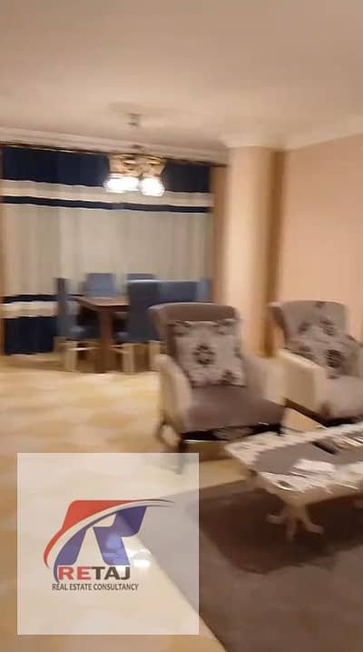 Unit Features: Furnished apartment for rent in South Academy A, First Settlement, on the first floor. 190 sq m, divided into 3 bedrooms, 2 bathrooms, and a 3-piece reception area. The apartment is finished to an ultra super lux standard and fully air-conditioned.