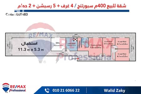 Apartment for sale 400 m Sporting (steps from Sporting Club) - 12,000,000 EGP cash - Agent / Walid Zaki