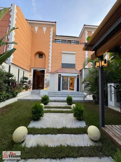 Townhouse for sale in Mena Garden City, 6th of October. Building area 254, land area 256. 4 rooms, 3 bathrooms, ultra-super luxury finishing, camera and sound system.