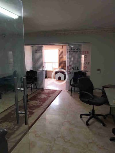 Fully air-conditioned office space for rent with a complete camera system at a bargain price in Royal Tower Mall opposite the new Lulu Hypermarket, on the second floor with an elevator, in front of the monorail station, one minute from Al-Hosary Mosque, next to October Plaza Mall. Al-Azhar Mall is nearby with all services. 5 rooms, 3 bathrooms, and a 3-piece reception suitable for the largest business.
