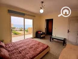 3- Divided into (3 bedrooms + bathroom + American kitchen) with a ground floor garden directly on the swimming pool + the first floor fully sees the sea