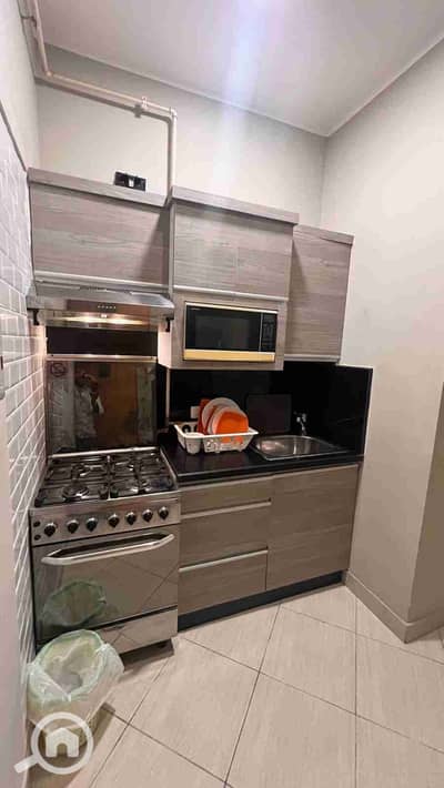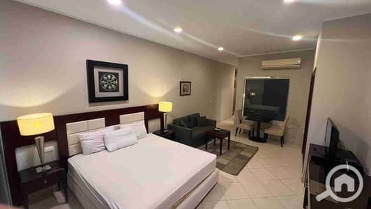 Furnished studio for rent in Dream Land compound, bedroom and reception and kitchens and bathroom with hotel furnishings and internet available.