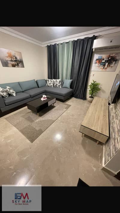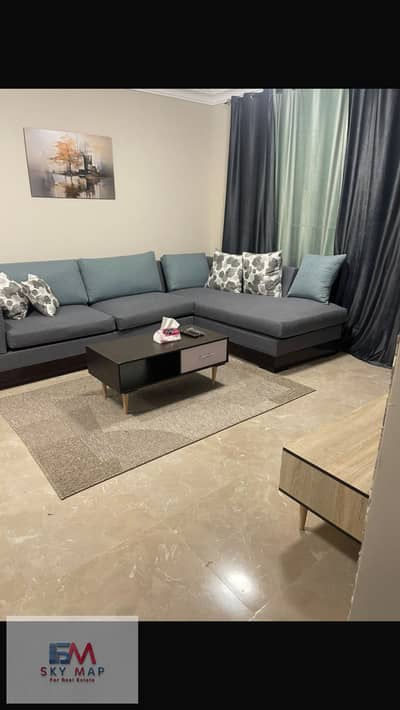 For rent, a furnished apartment, first occupancy, directly in front of services, Madinaty.
