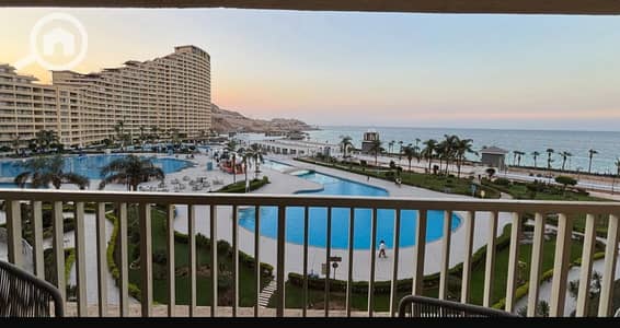 Chalet for sale, two bedrooms, ready for immediate occupancy, fully finished, with pool and sea views, prime location in Porto Sokhna, fourth floor fo