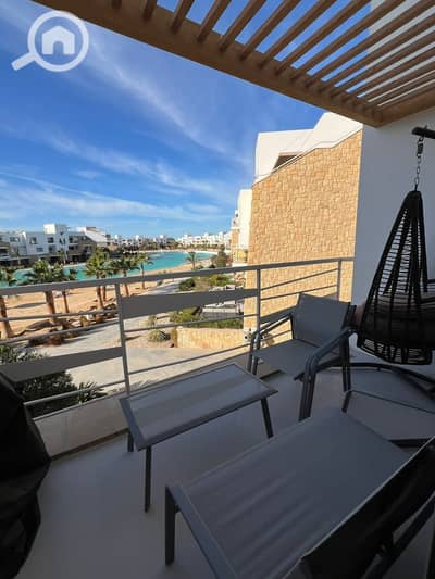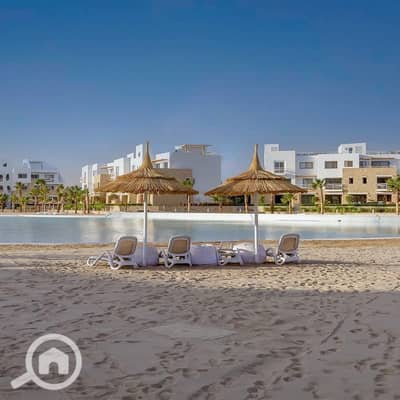 Prime beachfront location, very close to Abu Tig Marina and the new marina. Chalet for sale with air conditioning and kitchen in Swan Lake, El Gouna.