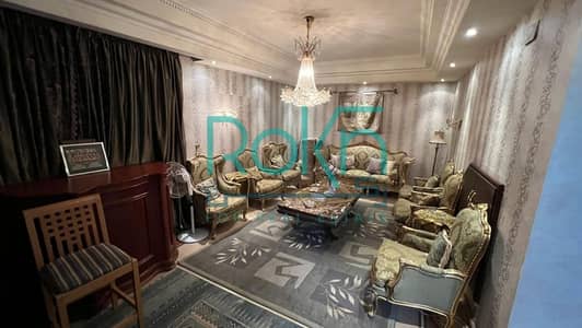 A fully registered villa in a prime location within a compound. The villa features 5 bedrooms, including a master bedroom with a large 3x3m dressing room. The ground floor comprises three sections, a bedroom, a bathroom, and a large kitchen. The first floor has two bedrooms, a bathroom, a master bedroom with a dressing room, and a living area. The second floor includes a bedroom with a bathroom and a large roof terrace. The total land area is 650 sq m, and the built-up area is 380 sq m, fully finished, with an indoor garage.