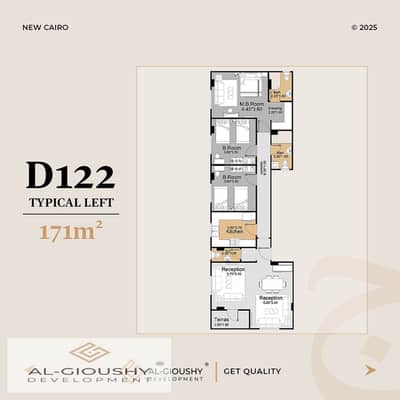 Your chance to own an apartment 171 meters in one of the best locations in Complementary District – Beit Al-Watan – Fifth Settlement, within plot D122 on a main northern street,