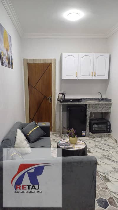 Unit Features: *Furnished studio apartment for rent in Gardenia Heights 1, Fifth Settlement - Close to Gamal Abdel Nasser and Mohamed Naguib Streets, prime location near services and transportation, behind Gomla Market - Super Lux finishing, modern furnishings Residential > - Ground floor with private entrance