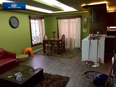 Ultra super luxury furnished apartment for rent in Al Rehab, it has a jacuzzi and an open garden view, with an area of 99 square meters.