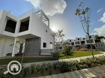For sale a detached villa 487m of built-up area, 346m of land Joulz Inertia Compound in 6th of October with a distinctive open view of the landscape n