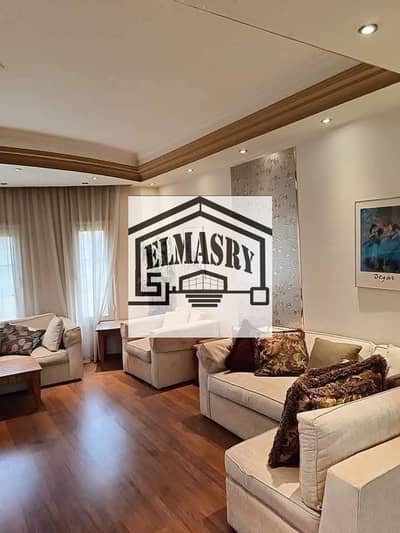 A standalone hotel villa with a private swimming pool is available for rent in a prime location in Rehab City, New Cairo (Model E1). The villa boasts a very distinguished location in Rehab City, close to Mall 1, the mosque, the club, the old market, the medical center, and all other services in Rehab. The villa comprises a ground floor, first floor, second floor, garden, and private garage. The ground floor includes a large reception area, a guest bathroom, a maid's room with a bathroom, a kitchen, and a large living room that can be converted into a bedroom. The first floor features a large living room, three bedrooms (including a master bedroom), two bathrooms, and a separate kitchen. The second floor includes a large multi-purpose room on the roof and a large terrace. The villa features super deluxe hotel-style finishes and is ready for immediate occupancy. It has five bedrooms, four bathrooms, two master bedrooms (including a nanny's room), and a main bedroom. The land area is 500 square meters, and the building area is 400 square meters. The villa includes a kitchen and air conditioning. The villa has a private swimming pool.