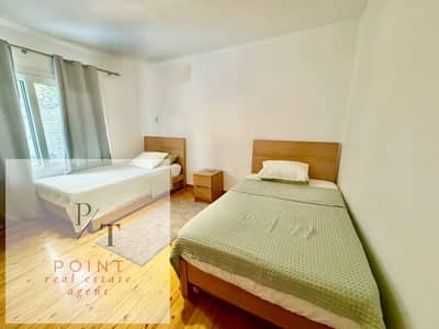 Ground floor apartment for rent with a garden, furnished with two bedrooms and two bathrooms, preferably for foreigners.