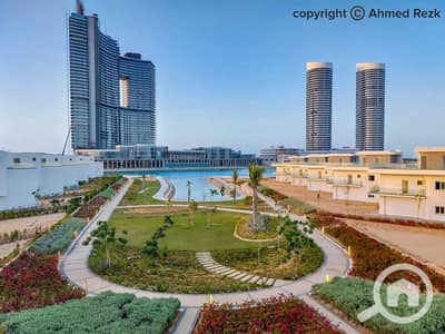 Your opportunity in Mazarine Alamein: Ground floor chalet with a garden, view of the towers, hotel services, and immediate handover.