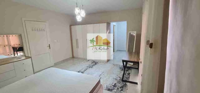 For rent, a new law in Al-Rehab, an apartment of 211 sqm with a wide garden view, including kitchen and air conditioning.