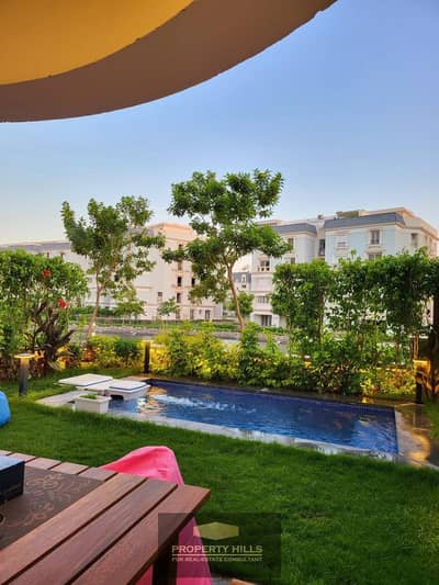 Ready-to-move-in townhouse, fully finished, ultra-super-lux, with a private swimming pool, next to New Giza, Patio 6, and Dream Land in Mountain View.