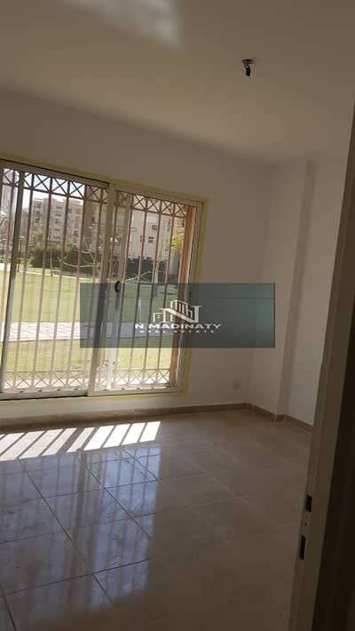 For rent in Madinaty (new law), a ground floor apartment with a 100 sq m garden + 50 sq m garden in B3, facing north with a clear garden view, very close to services and steps from Madinaty Club.