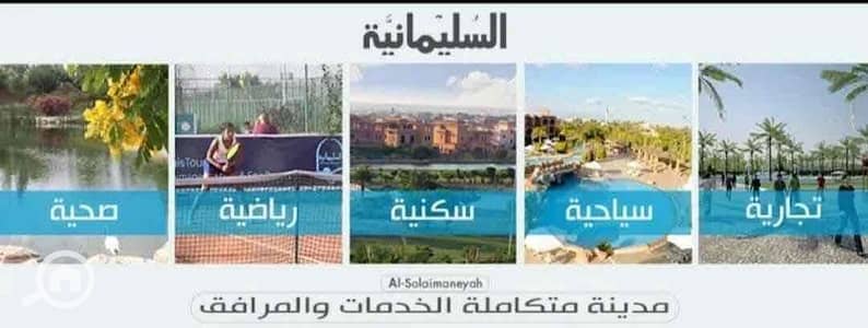 Golf Al-Sulaymaniya compound, 55 km Cairo-Alexandria Desert Road, the only regulated compound with all services including an international school, sports club, Al-Sulaymaniya hypermarket, and close to Sphinx International Airport and the Sphinx City train station and Al-Ahly Club.