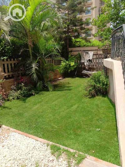 For sale in Al Rehab, an apartment of 200 sqm with a 67 sqm garden, company finishing, wide garden view in front and behind, at a great price.