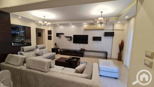 A furnished ground floor apartment with a garden for rent, two bedrooms in Al Rehab.