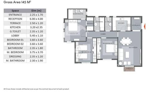 BUA:145 m 3 Bedrooms + 3 Toilets