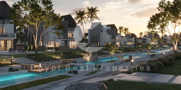 An apartment in Rivers Compound, prime location, developed by Tatweer Misr in Sheikh Zayed, next to the Alexandria Road and close to Beverly Hills.