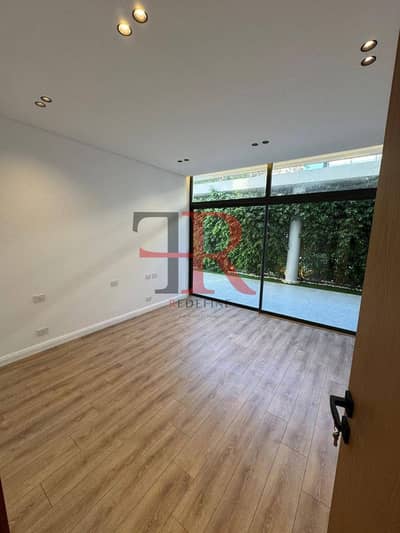 Apartment with private garden semi furnished with kitchen & ACS for rent in lake view residance - new cairo