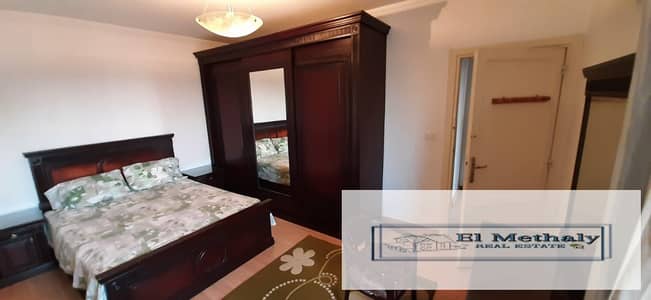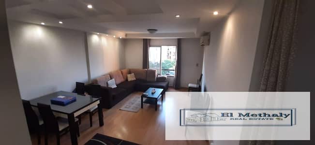 Steps away from the old market and Mall 1, near the restaurant area, a furnished 90m² apartment for rent in Al Rehab, two bedrooms.