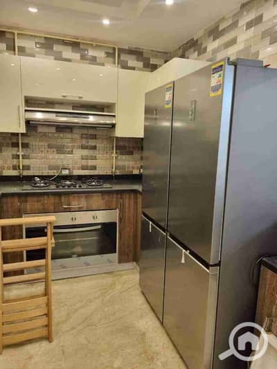 Ground floor apartment with garden for rent in the Al-Khomail Compound – Sheikh Zayed directly on the axis • Apartment area: 150 sqm • Garden area: 160 sqm – landscaped + ready pergola • Layout: 3 rooms including a room with dressing + 2 bathrooms • Finishing: higher than super lux – first occupation • Kitchen: fully equipped •