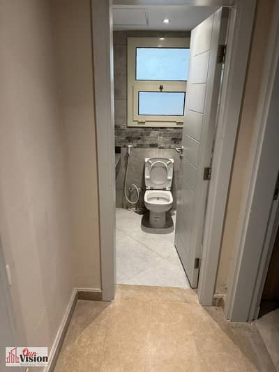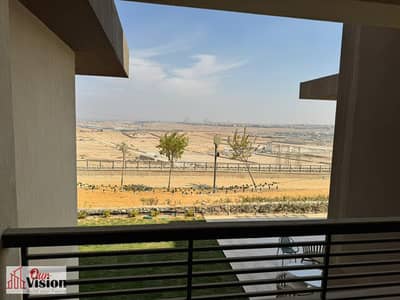 Apartment for sale in New Giza, Westridge, first floor, 175 square meters, 2 bedrooms (including a master bedroom), 3 bathrooms, open view of the Pyramids, sold with kitchen, air conditioners, and garage. Asking price: 14,500