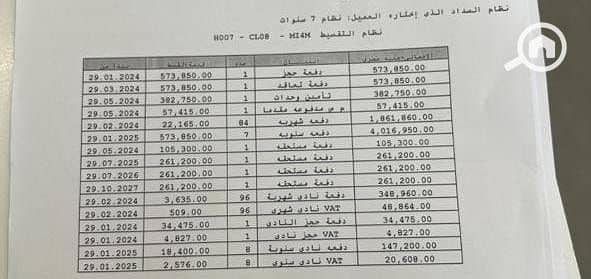 - Total without club: 7,915,000 EGP, installments over 7 years
