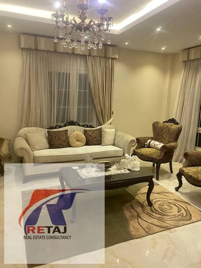 Apartment for sale in a very special location, ground floor with a garden in the villas of the second neighborhood in the Fifth Settlement, second row from 90th South Street, and one minute from the Air Force Hospital and Mountain View Square.