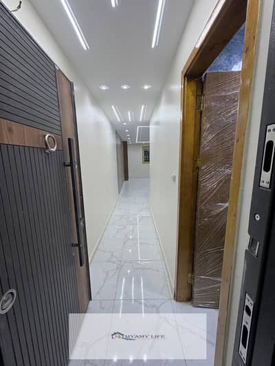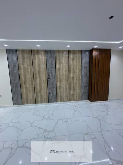 For sale, an apartment at the back in the Pyramids Gardens, located on the fourth repeated floor (above two floors).