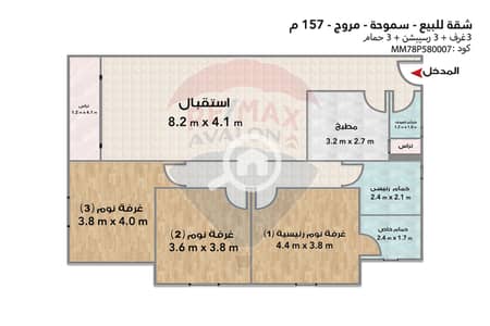 شقة للبيع 157 م سموحة (مروج) - 2,028,000 ج (مقدم + اوفر) - الوكيل / الوكيل/ مينا موسي