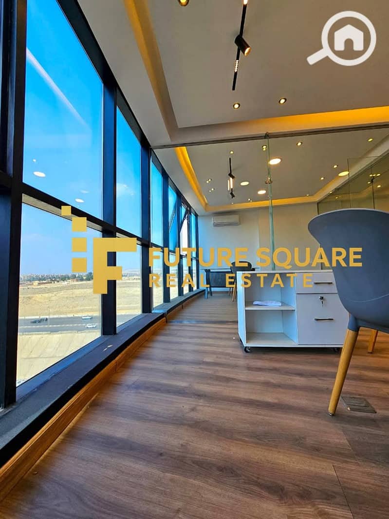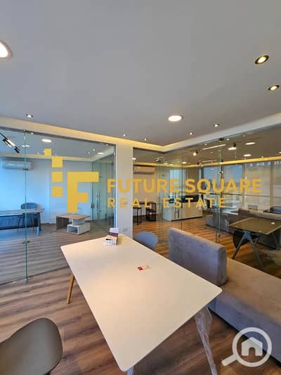 Furnished administrative office 100m fully panoramic for rent – Rayhana Plaza administrative building (Al-Morshedy Architecture) – prime location in Zahraa El Maadi – ready for immediate delivery