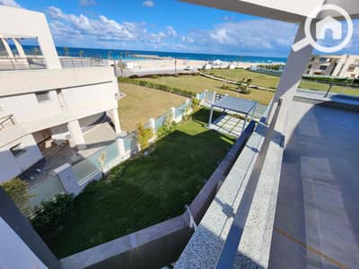 A villa on the first row by the sea with a very high level of finishing on a land area of 1000m and buildings of more than 500m.