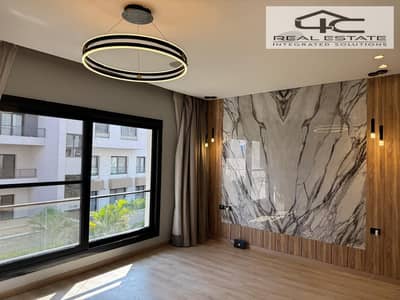 Duplex , ground floor with garden and first floor, 400 m, in Trio Gardens Compound, Fifth Settlement, fully finished with curtains, kitchen,