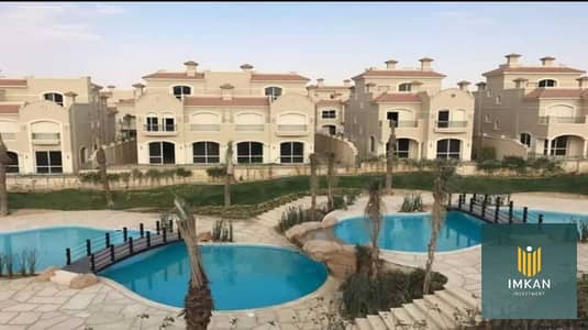 Townhouse for sale in Al Patio Town Compound, Fifth Settlement, Cairo, with a view of the landscape and a private swimming pool.