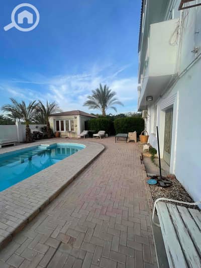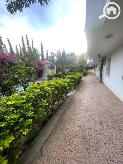 For sale at Ahmad Araby Association, a plot of land with a luxurious villa with a swimming pool. The plot has fruitful mango trees, and the villa covers an area of 450 square meters, consisting of 3 duplexes (ground and first floor) fully finished with distinctive features, and the second floor has an independent apartment. The entire plot and buildings are under an old division before 2016, and there are livestock production barns attached to the plot, along with an independent room for the caretaker next to the villa from the owner.