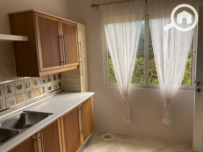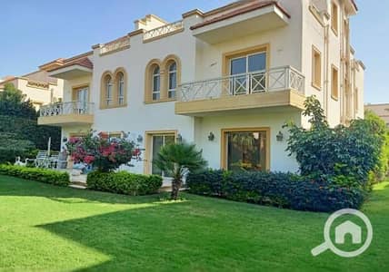Villa for sale in Greens Sheikh Zayed compound with kitchen and air conditioning, featuring a distinguished view of landscaping and a lake.