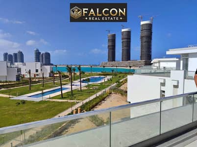 Corner Chalet with sea view and El Alamein Towers "Ready for inspection" for sale in New El Alamein - Mazarine Compound North Coast