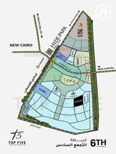 For sale: a commercial mall land of 14,000 m², directly on the southern 90 street, first corner in the heart of the Sixth Settlement.