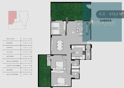 Internal Layout: (3 bedrooms + 3 bathrooms + reception - garden)