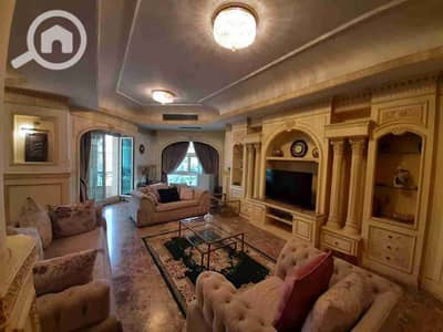 Independent villa for sale with super deluxe finishing - New Cairo - Al-Shuwayfat Villas Land area (600) square meters - Building area (1200) square meters - Comprising (4) floors: basement + ground + first + roof (5) master bedrooms, including one master en suite with bathroom and dressing + living room + (2) bathrooms + reception (5 pieces) + two main kitchens, one of which is a (continental) kitchen + (2) living rooms + storage room + nanny's room with bathroom + security guard's room with bathroom and kitchen. . . private swimming pool + large garden + gym - private garage for (7) cars. Reception floors made of imported marble + rooms with parquet (HDF) German. . . double-glazed sound and dust insulation (PVC) German. . . open view on a main square in one of the most upscale and distinguished locations.