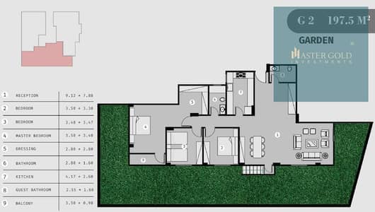 Internal Layout: (3 bedrooms + 3 bathrooms + reception - garden)